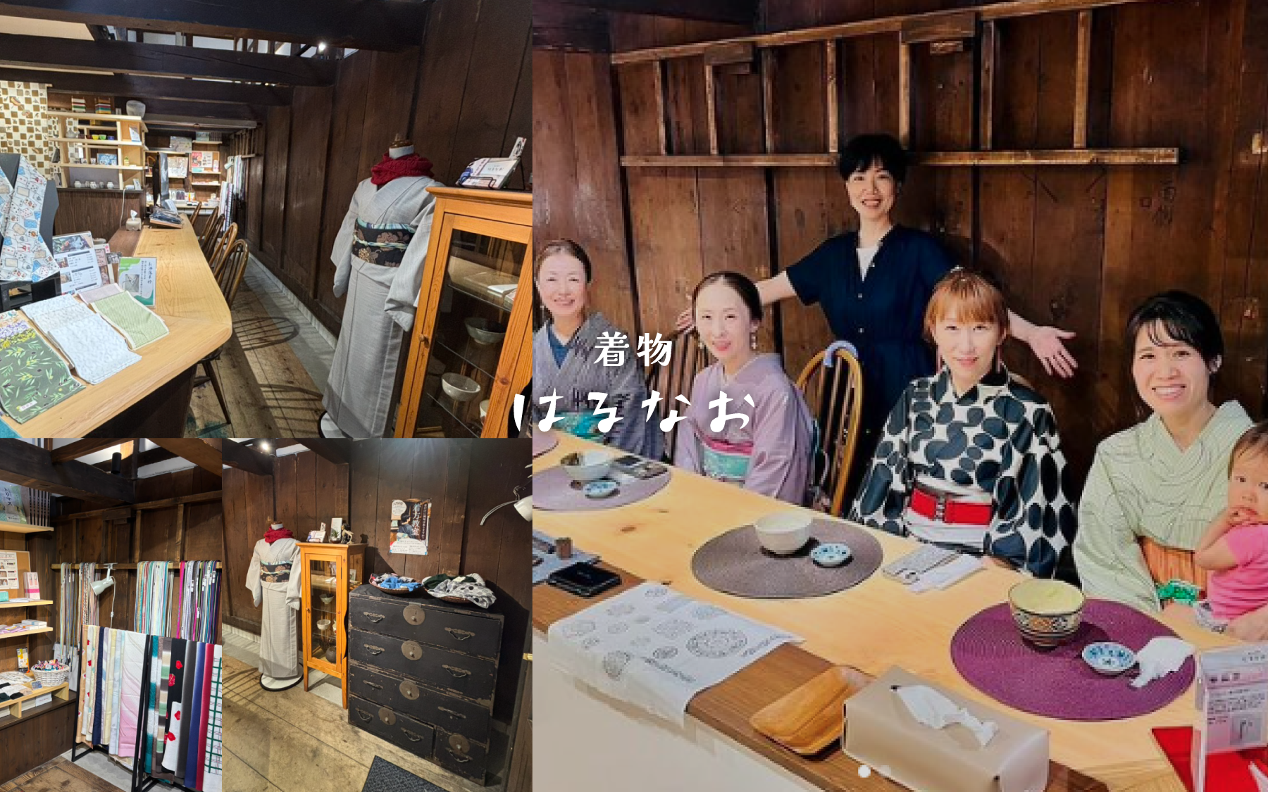 わたしたち「着物 はるなお」は、石川県七尾市と富山県高岡市に拠点を置く老舗呉服店です。 単に呉服を販売するだけでなく、「忙しい日々に、少しの“和時間”という遊びを入れてリフレッシュしてほしい」という思いで、着物を通じたライフスタイルを提案しています。