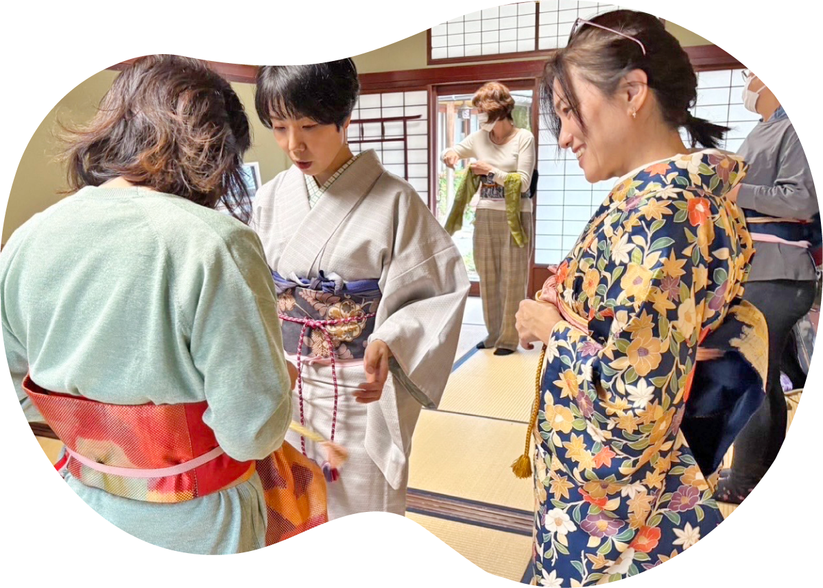 自分で着付けができればもっと楽しい。 基礎からわかりやすく指導。 もっと着物を身近に感じてもらいたい、自分で着られるようになり着物を好きになってほしいという思いを込めて”着方教室”を開催しております。