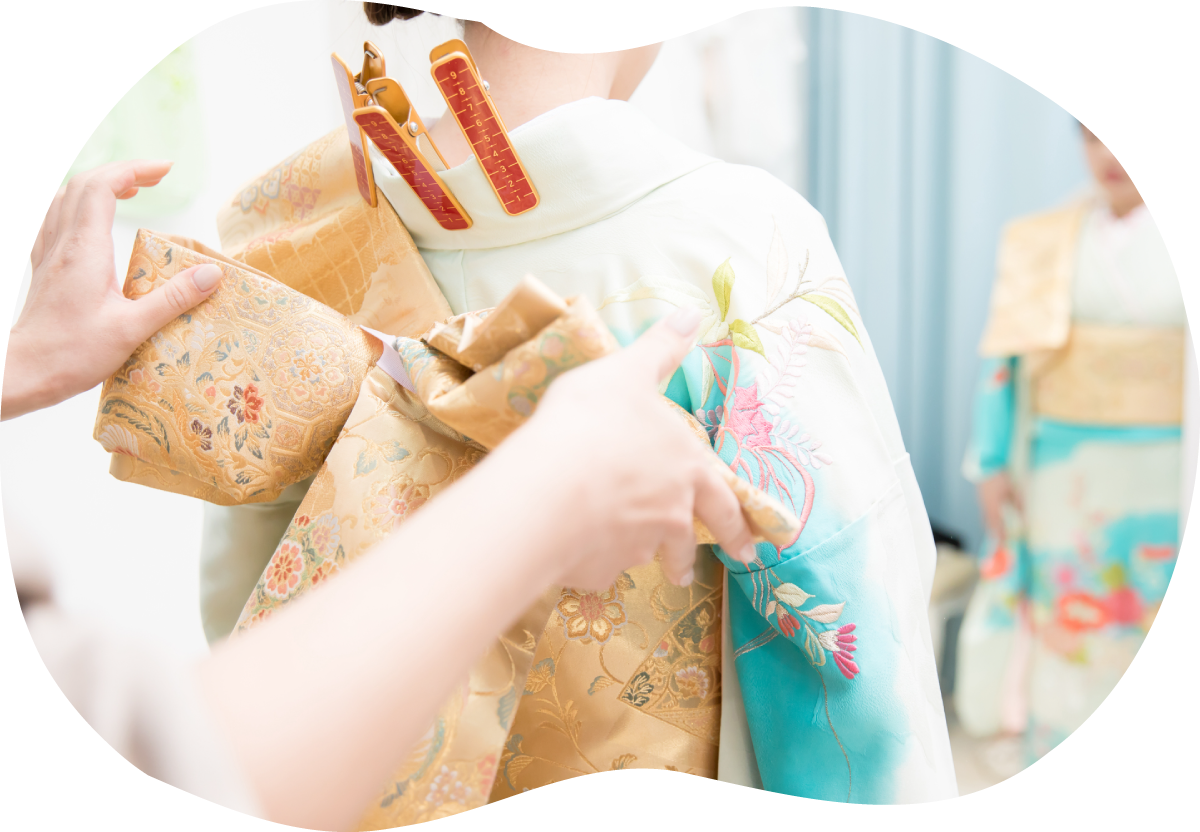 ご自宅でゆっくりと着付を。 着付けが必要な時、ご自宅や会場など、ご指定の場所へ出張いたします。移動の手間がなく、小さなお子様連れや早朝の準備も安心です。